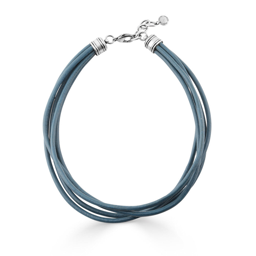 - Multi-strand blue leather
