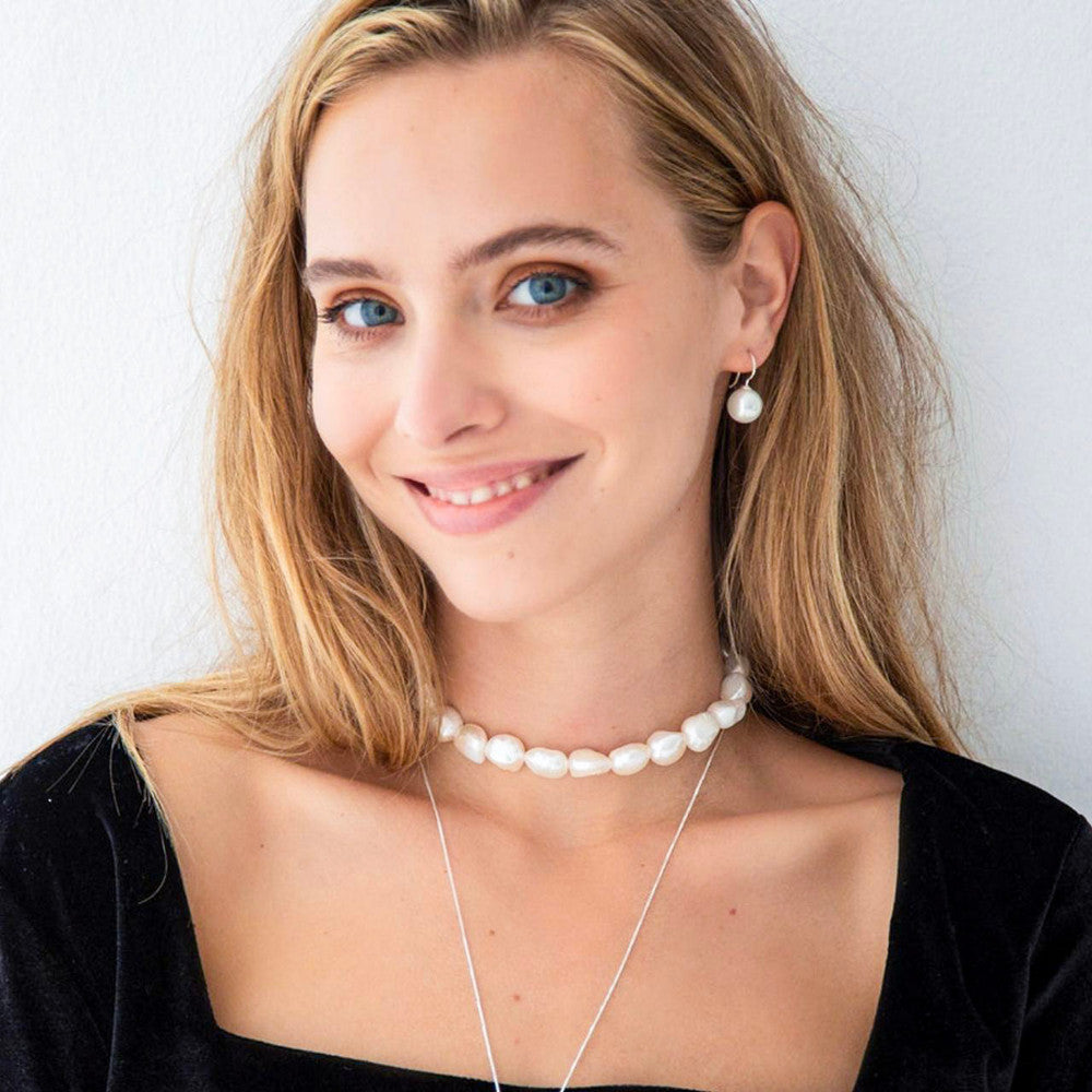 Sterling Silver Shell Pearl Drop Earrings. E5240