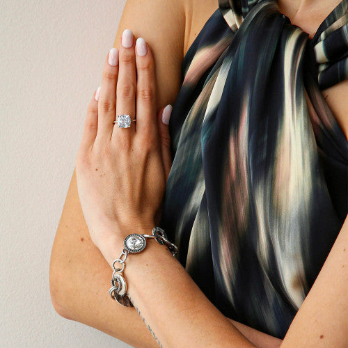 Inspired circles of burnished silver surrounding a sparkling crystal makes this a Miglio collectable designer piece - a best seller since 2010!